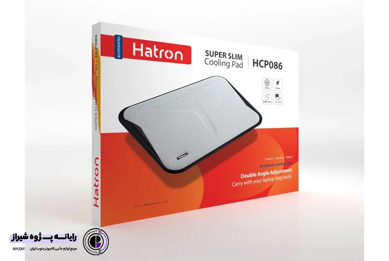 پایه خنککننده مدل «HCP086» نیز از طراحی زیبا و کیفیت ساخت رضایتبخشی برخوردار است. با توجه به ابعاد HCP086 میتوانید از این محصول برای لپتاپهایی 15.6اینچی و کوچکتر استفاده کنید. استند HCP086 با داشتن دو فن 140 میلیمتری قدرتمند، میتواند نقش مؤثری را در کاهش دمای لپتاپ ایفا کند. این محصول شرکت هترون از ترکیب فلز و پلاستیک ABS ساخته شده است و به همین دلیل از دوام و طول عمر بالایی برخوردار است. در قسمت زیرین این محصول محفظهای وجود دارد که کابل اتصال USB را در خود نگه میدارد. وجود این محفظه باعث میشود که کابل اتصال گم نشود و از گره خوردن و درهم پیچیدن کابل نیز جلوگیری میکند. این کابل از یک طرف به پایه خنککننده متصل است و در طرف دیگر دارای دو پورت USB متصل به یکدیگر است که یکی از آنها به لپتاپ وصل میشود و میتوانید از دیگری بهعنوان خروجی USB برای شارژ تلفنهمراه یا تبلت استفاده کنید. هترون دو پایه برای این محصول در نظر گرفته است که میتوانید با بازکردن آنها، یک سطح شیبدار را ایجاد کنید. البته میتوانید پایههای این استند را باز نکنید که با توجه به وجود لایههای باریک سیلیکونی در زیر این خنککننده، استفاده از آن روی میز خطوخشی ایجاد نمیکند.